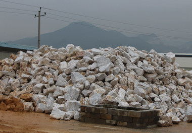 圖6 從礦山運(yùn)來(lái)的大理石,堆放在料場(chǎng),以備使用。我們明顯會(huì)發(fā)現(xiàn)石頭外表有黃泥等贓物,怎么辦呢,稍后請(qǐng)看圖8.