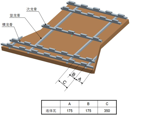 注:1、連體瓦與連體支架由M5鉆尾絲固定與次龍骨上;