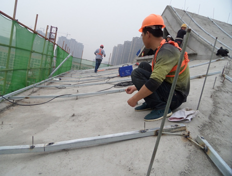 安裝豎龍骨時必須拉線將屋面調平: