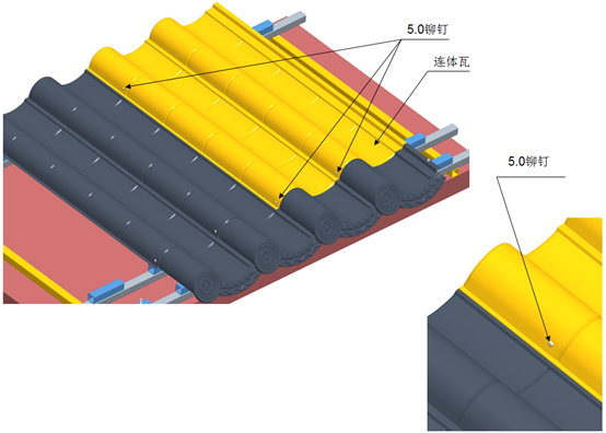 六、屋面金屬仿古連體瓦安裝示意圖:
