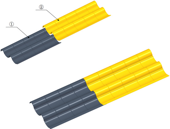 連體瓦長度方向搭接示意圖: