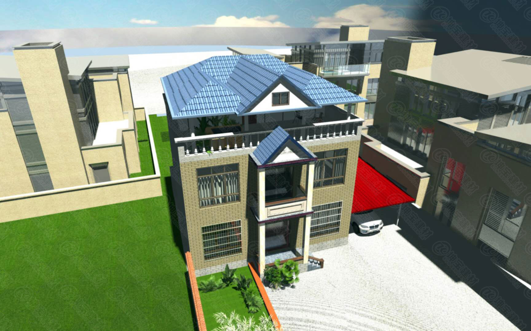 甘肅隴南的高老板為客戶用CAD軟件,設(shè)計的別墅屋面瓦整體效果圖