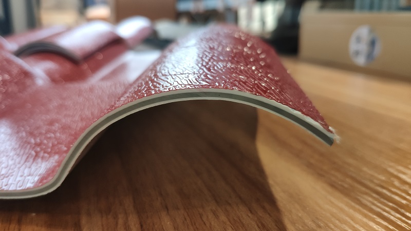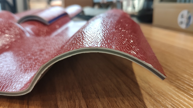 市面上看到的樹脂瓦,兩層白中間灰這種就是四層白底樹脂瓦,是2021年樹脂瓦行業(yè)主推的一款產(chǎn)品,它具備高性價(jià)比,抗開裂,有硬度也有軟度,在原有層或者三層樹脂瓦的情況下進(jìn)行了升級,在asa膜下多加了新料pvc,目的防止開裂,灰色為骨架層作為外形的支撐,上下為新料pvc增加樹脂瓦的柔韌性以及抗延展性,有效的提升瓦的美觀度,以及增加瓦底部亮度,耐磨效果。