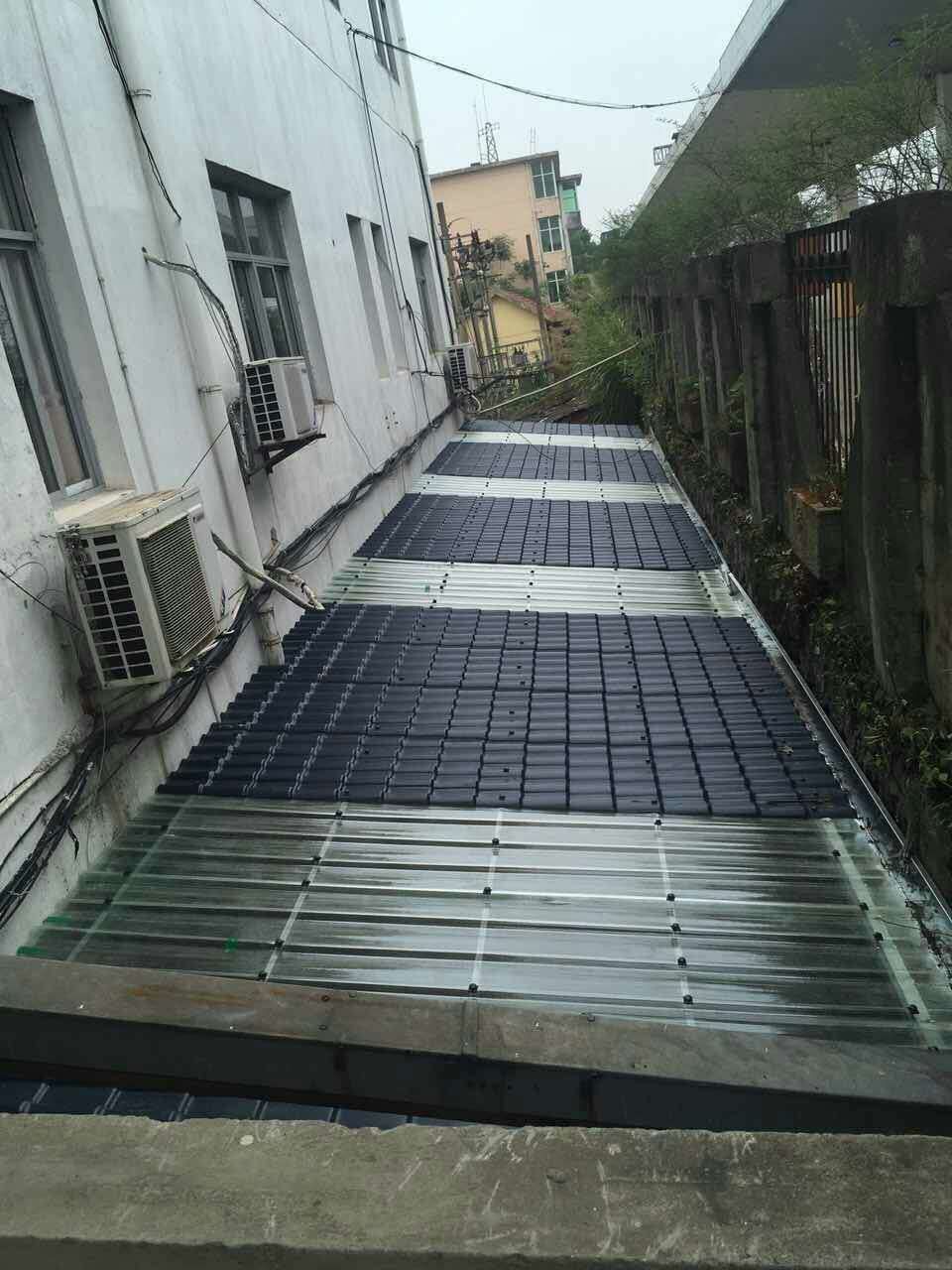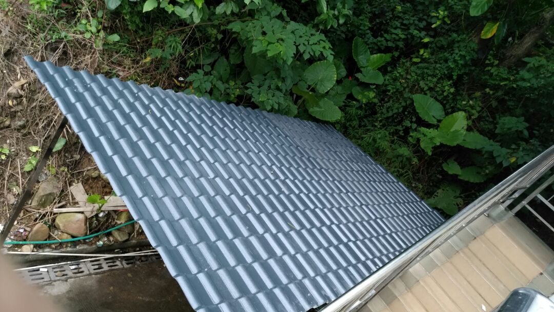 首先,樹脂瓦,釆用化學(xué)原料機械高溫壓制而成,主要原料是丙烯腈、苯乙烯、丙烯酸橡膠三種物質(zhì)。重量輕,不到傳統(tǒng)瓦十分一,耐腐蝕,防水,防壓,防凍,防潮,雨停水不留,防冰雹,防地震,隔熱保溫,耐用,不褪色,保持屋面漂亮美觀,如果你使同正規(guī)廠家生產(chǎn)的樹脂瓦,它使用壽命可長達(dá)30年以上,永遠(yuǎn)高于傳統(tǒng)的小青瓦,黃瓦了?,F(xiàn)在我們常見的雨棚、遮陽棚等大多是用樹脂瓦蓋的。同時,樹脂瓦顏色鮮艷,這一點確實是顯而易見的。紅的、藍(lán)的、灰的等等,只要是你想要的房頂?shù)念伾际悄軌蚪o你制造出來的。而且,干凈,用樹脂做的房頂自然是下雨天雨水沖洗的會比較干凈,所以樹脂瓦看上去比較潔凈。