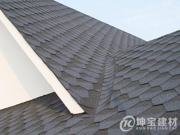 瀝青瓦是以玻璃纖維氈為胎體,經(jīng)浸涂優(yōu)質(zhì)石油瀝青后,瓦片一面覆蓋彩色礦無粒料物質(zhì),另外一面撒以隔離材料所制成的瓦狀屋面防水片材,它具有良好的防水、裝飾功能和色彩豐富,形式多樣,質(zhì)輕面細(xì),施工簡便等特點(diǎn)。缺點(diǎn)是容易老化。