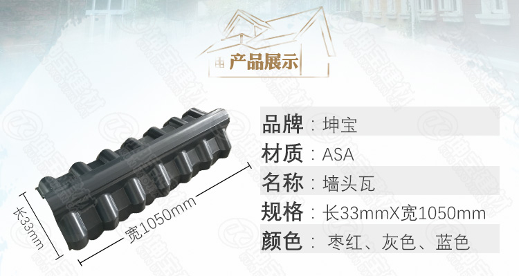 | 【名稱】 | 仿古圍墻瓦、女兒墻頭瓦、樹脂圍墻瓦 | ||