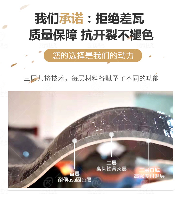 采用新設備,數(shù)字化自動生產(chǎn),合成樹脂瓦專業(yè)生產(chǎn)經(jīng)驗,嚴把質(zhì)量關。