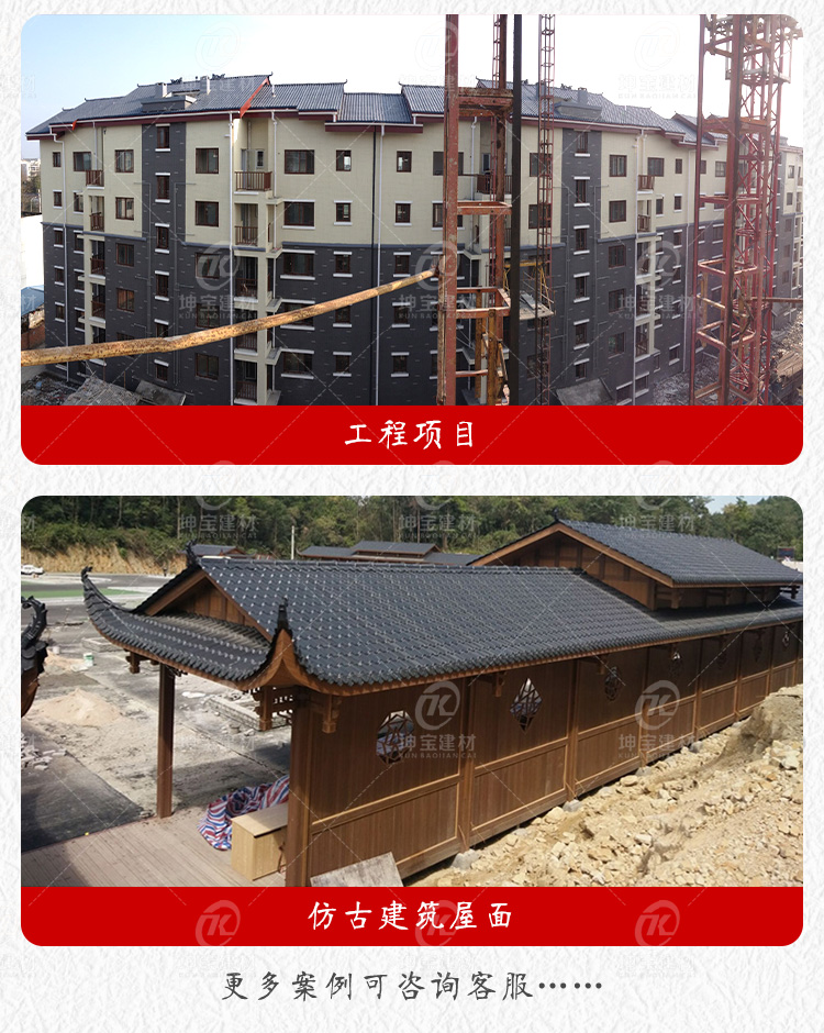 用途:平改坡屋面,別墅屋面,農(nóng)村自建房屋面,民宅屋面,工業(yè)廠房,仿古建筑,涼亭圍墻裝飾等