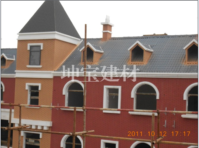 導(dǎo)讀: 成都青城山腳下,修建的歐洲風(fēng)情小鎮(zhèn),是兩到三層的紅綠相間的小洋樓別墅群。屋頂采用坡屋面,鋪蓋現(xiàn)在最流行、環(huán)保的合成樹脂瓦,外觀造型古樸大方,色彩清新淡雅,歐式風(fēng)情濃郁,成為當(dāng)?shù)匾坏漓n麗的風(fēng)景線。 一、合成樹脂瓦造型類似釉質(zhì)琉璃瓦,所