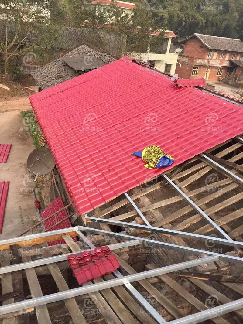 2020年根據(jù)農(nóng)村計劃合成樹脂瓦改造換新顏,現(xiàn)再好多農(nóng)村基本上都是家家戶戶自己老房的小青瓦房,自拆自建起來的新房子,有的樹脂瓦用在別墅上,有的用在平房上,兩坡流水居多,然后就是四面流水的合成樹脂瓦屋面,下面就是客戶拍照回來的紅色樹脂瓦安裝效果圖。