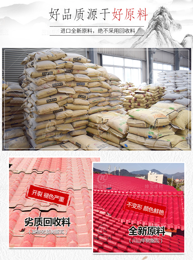 坤寶生產總監(jiān)說:為了生產1片樹脂瓦,我們研究了19家工廠的產品,淘汰了81家不理想的原料商。選擇我們坤寶樹脂瓦產品