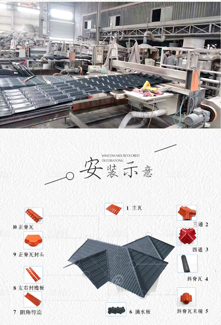 采用進口自動化設備,數字化自動生產,6年合成樹脂瓦專業(yè)生產經驗,嚴把質量關。